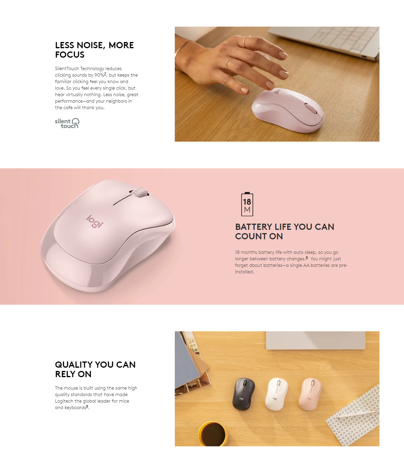 • SilentTouch Technology: 90% noise reduced Left/Right-click, Middle click