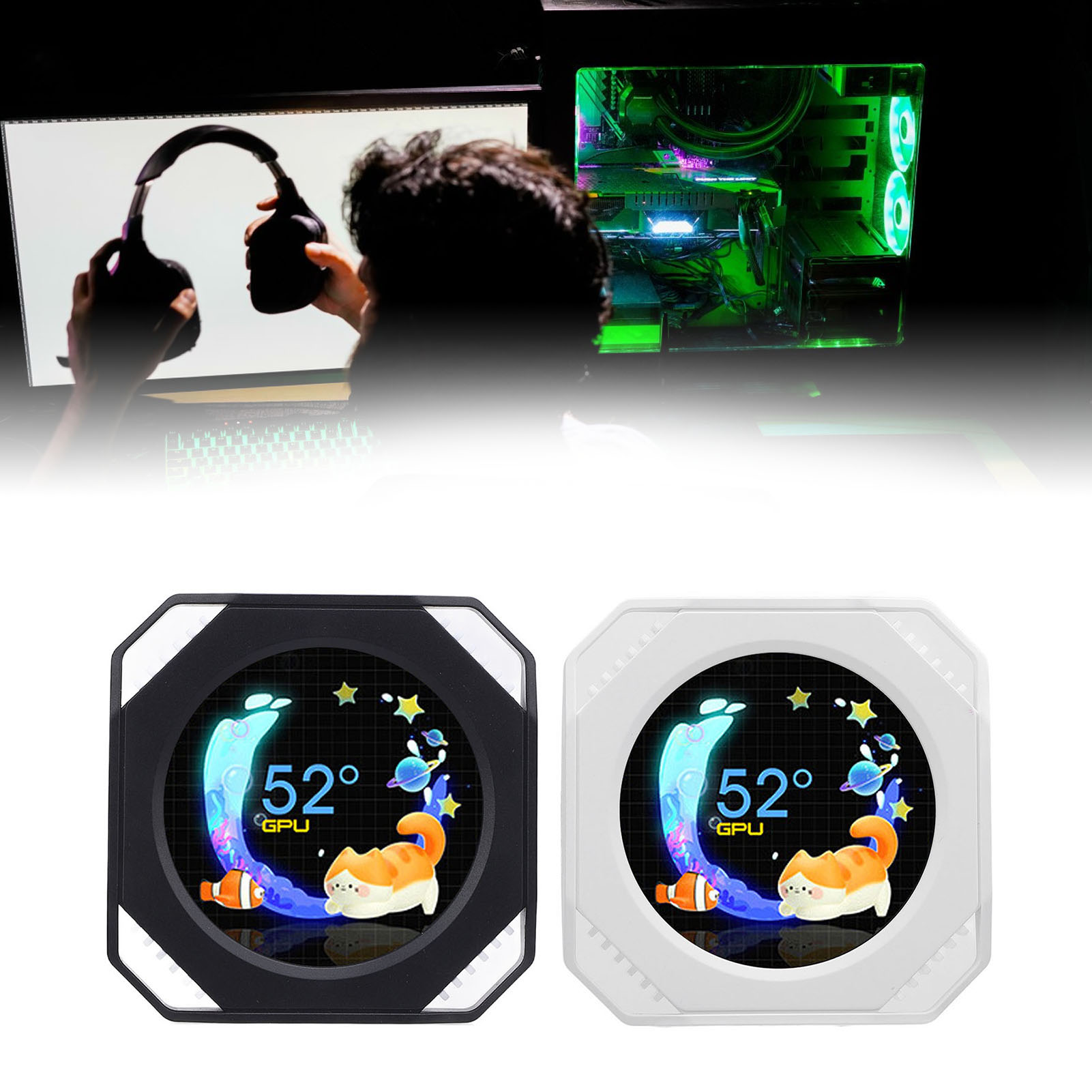 - VARIOUS REAL TIME DATA: The water cooler screen supports real time monitoring, including, CPU usage, model, temperature, voltage, frequency, fan; video card usage, power consumption, model, fan frequency, temperature, pump fan; It also displays RAM, hard disk drive, network, weather, date, volume, and more.