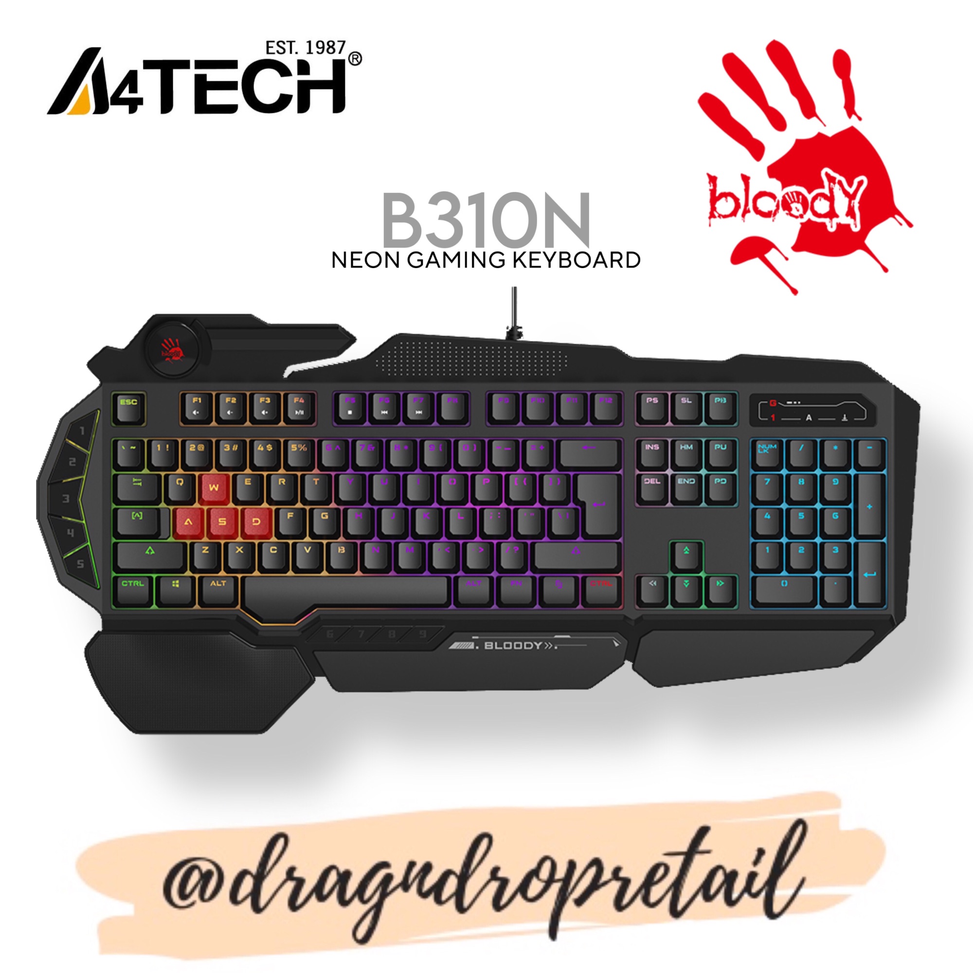 Choose Bloody B310N Neon RGB Gaming Keyboard with Wrist Rest for quality and reliability.
