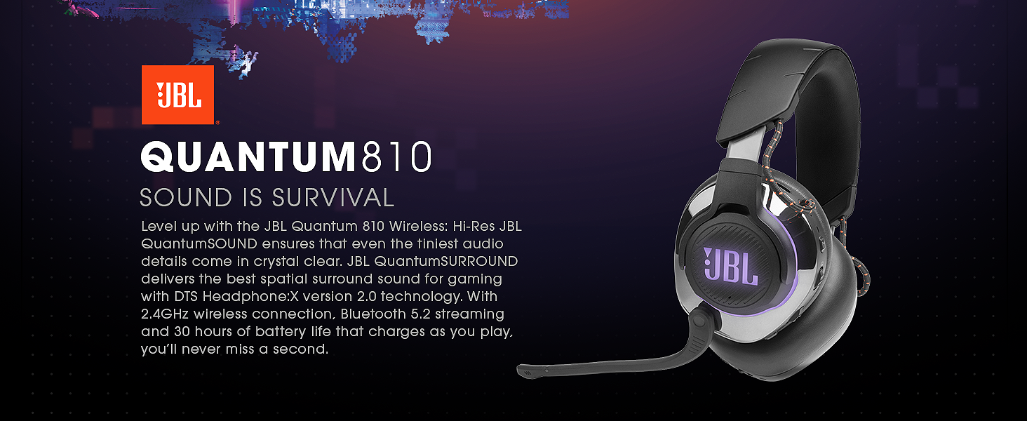 JBL Quantum 810 Wireless, Dual surround sound, Hear every detail with Hi-Res drivers, Dual wireless, Active Noise Cancelling technology for gaming, Black