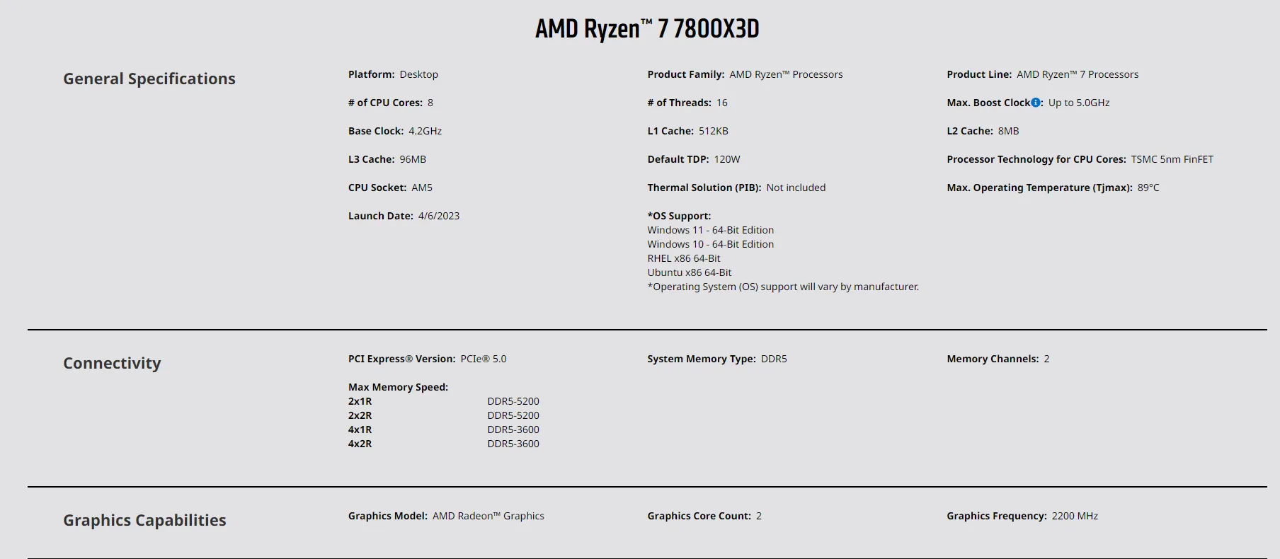 AMD Ryzen 7 7800X3D Raphael AM5 4.2GHz 8-Core Gaming Processor