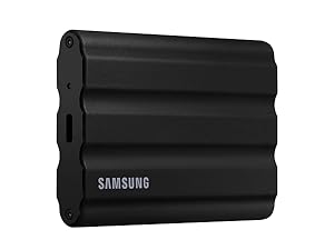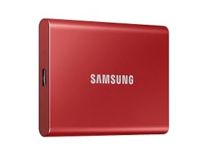 PORTABLE STORAGE ON THE GO: The light, pocket-sized Portable SSD T7 delivers fast speeds with easy and reliable data storage for transferring large files, including crucial business documents, games, or movies TRANSFER IN A FLASH: Transfer massive files with the incredible speed of USB 3.2 Gen 2; PCIe NVMe technology delivers blazing fast sequential read/write speeds up to 1,050/1,000 MB/s1, making the T7 2x as fast as the previous T5 model2 STRONG & SECURE: Unlike HDDs, the Portable SSD T7 has no moving parts so it's more resistant to shock; Plus, its solid aluminum unibody adds more protection, keeping it safe from falls of up to 6 ft3 and is backed by a 3-year limited warranty4 RELIABLE THERMAL SOLUTION: The T7’s advanced thermal solution uses the Dynamic Thermal Guard to withstand and control heat, so the portable SSD stays at an optimal temperature even at fast speeds5 SLEEK & COMPACT STYLE: Roughly the size of a credit card and only weighing 2 ounces, the T7 fits comfortably in the palm of your hand and is light enough to take your files on the go FIND YOUR BEST FIT: Pick a color from classic gray to striking blue and red, and choose from three capacities to fit what your lifestyle demands: 500 GB, 1TB, or 2TB SIMPLE SETUP: The T7 comes embedded with software6 to help you set up a password to get the latest firmware updates for your PC, Mac, or Android mobile devices7; You can also download the mobile app for Android smartphones and tablets