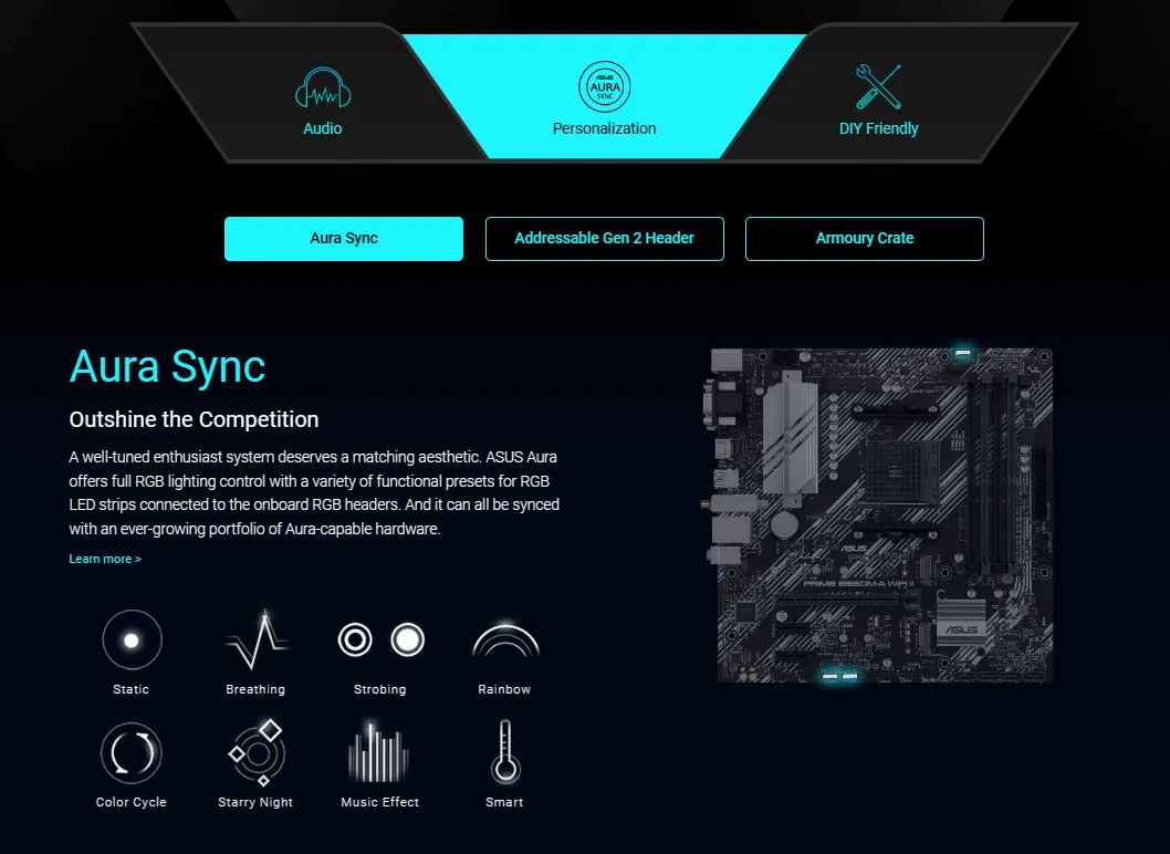â– Aura Sync RGB Lighting: Onboard addressable Gen 2 header and RGB headers for RGB LED strips, easily synced with Aura Sync-capable hardware