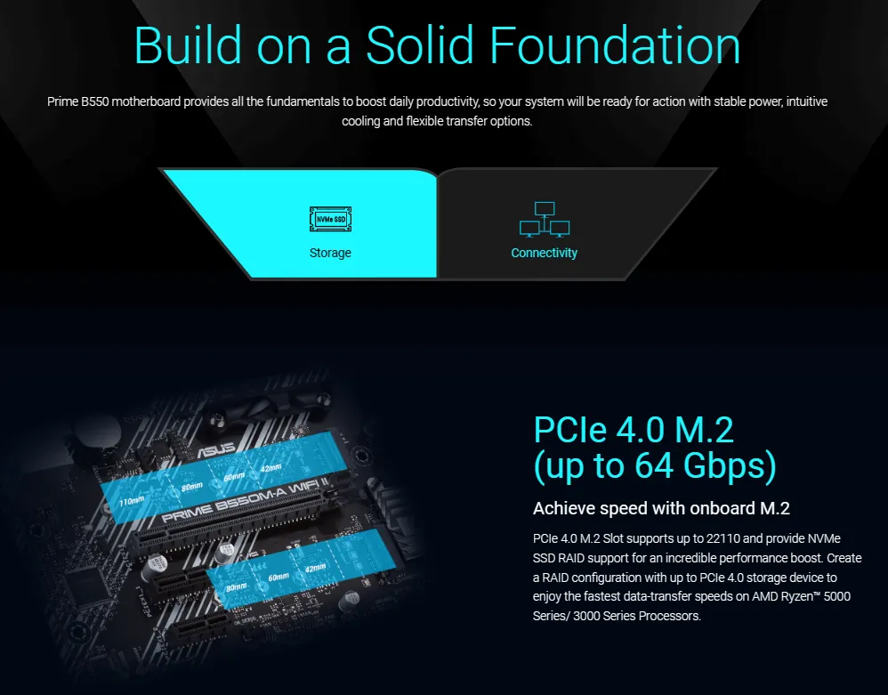 â– Ultrafast Connectivity: Dual M.2, PCIe 4.0, Wi-Fi 6, 1 Gb Ethernet, USB 3.2 Gen 2 Type-A support