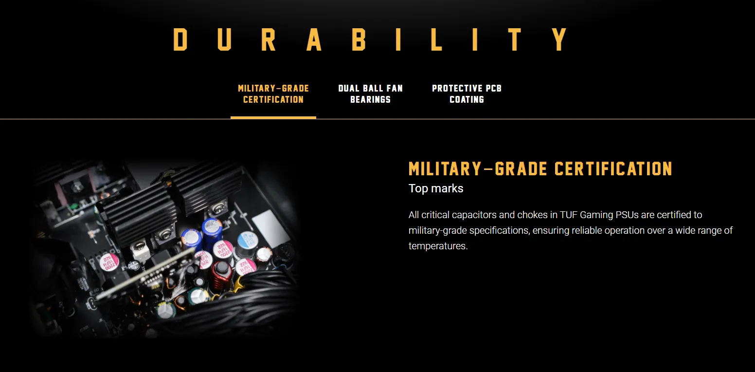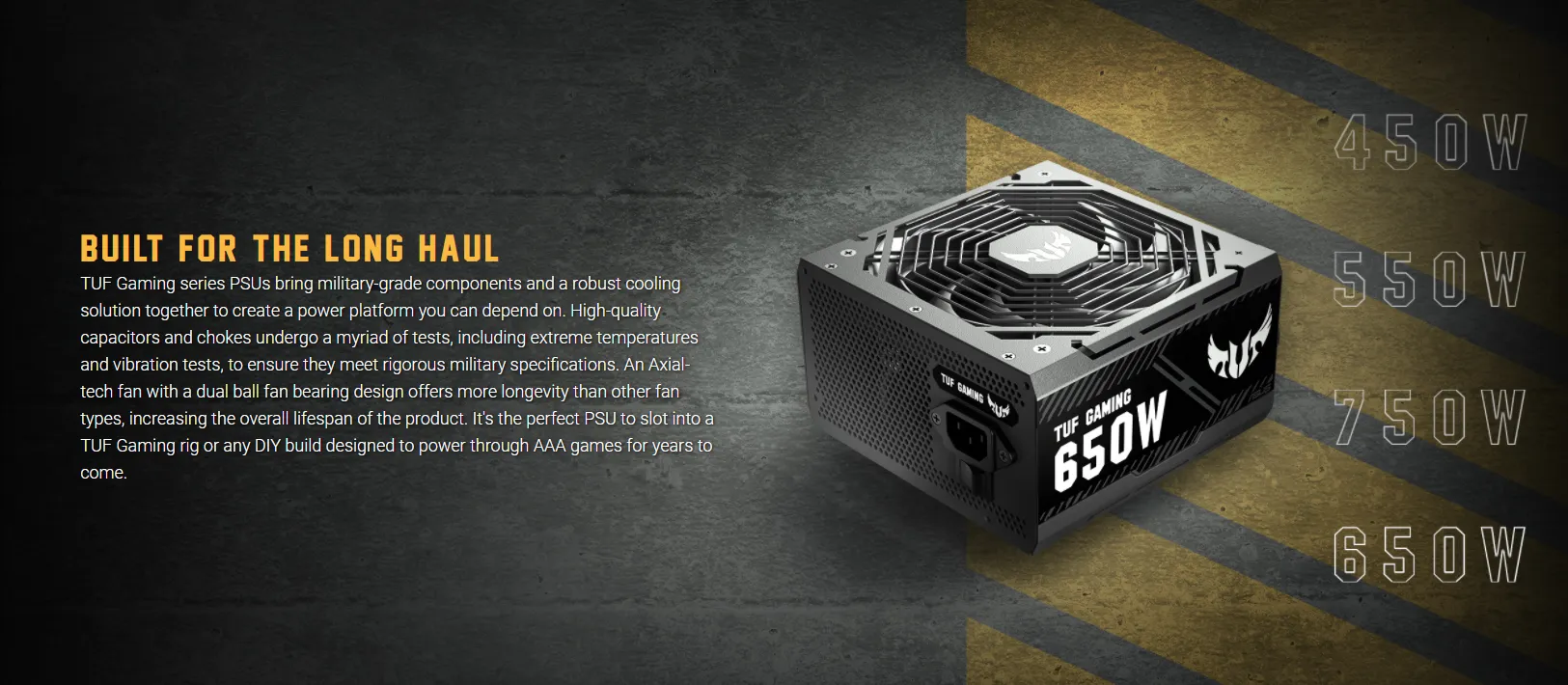 ASUS TUF Gaming 650W Bronze PSU (Power Supply, 80 Plus Bronze, Military-Grade Certification, Dual Ball Fan Bearings, Protective PCB Coating, Axial-tech Fan Design, 0dB)