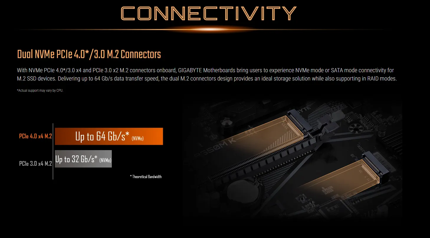 > Dual Ultra-Fast NVMe PCIe 4.0/3.0 M.2 Connectors