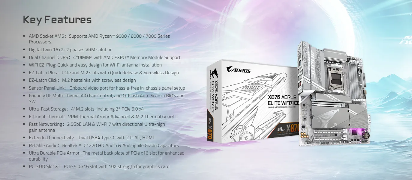 • AMD Socket AM5:Supports AMD Ryzen™ 9000 / 8000 / 7000 Series Processors