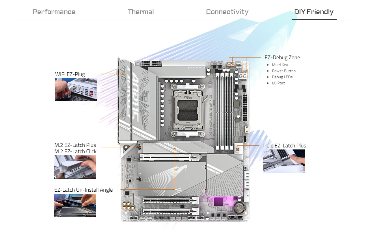 • EZ-Latch Plus:PCIe and M.2 slots with Quick Release & Screwless Design