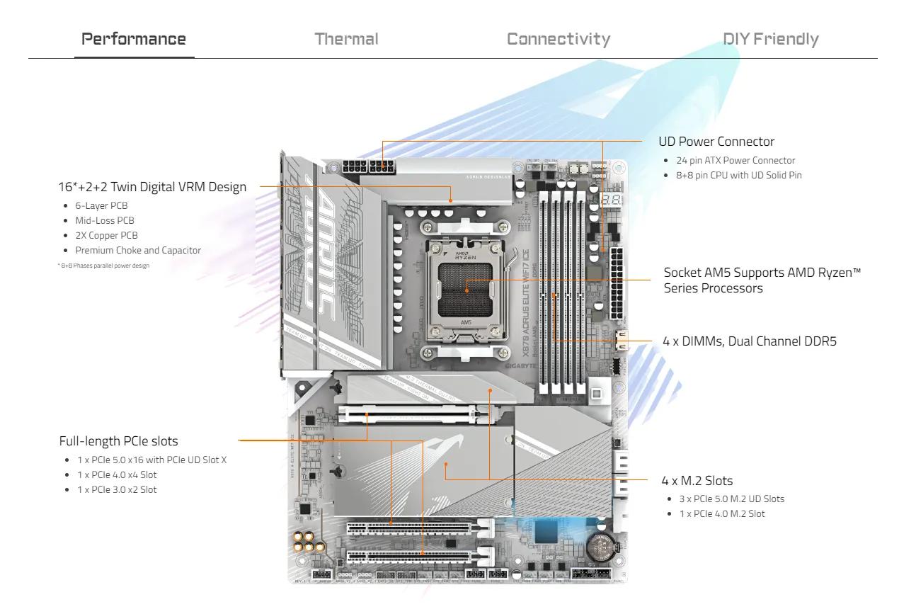 • Dual Channel DDR5:4*DIMMs with AMD EXPO™ Memory Module Support