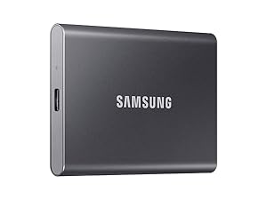 PORTABLE STORAGE ON THE GO: The light, pocket-sized Portable SSD T7 delivers fast speeds with easy and reliable data storage for transferring large files, including crucial business documents, games, or movies TRANSFER IN A FLASH: Transfer massive files with the incredible speed of USB 3.2 Gen 2; PCIe NVMe technology delivers blazing fast sequential read/write speeds up to 1,050/1,000 MB/s1, making the T7 2x as fast as the previous T5 model2 STRONG & SECURE: Unlike HDDs, the Portable SSD T7 has no moving parts so it's more resistant to shock; Plus, its solid aluminum unibody adds more protection, keeping it safe from falls of up to 6 ft3 and is backed by a 3-year limited warranty4 RELIABLE THERMAL SOLUTION: The T7’s advanced thermal solution uses the Dynamic Thermal Guard to withstand and control heat, so the portable SSD stays at an optimal temperature even at fast speeds5 SLEEK & COMPACT STYLE: Roughly the size of a credit card and only weighing 2 ounces, the T7 fits comfortably in the palm of your hand and is light enough to take your files on the go FIND YOUR BEST FIT: Pick a color from classic gray to striking blue and red, and choose from three capacities to fit what your lifestyle demands: 500 GB, 1TB, or 2TB SIMPLE SETUP: The T7 comes embedded with software6 to help you set up a password to get the latest firmware updates for your PC, Mac, or Android mobile devices7; You can also download the mobile app for Android smartphones and tablets